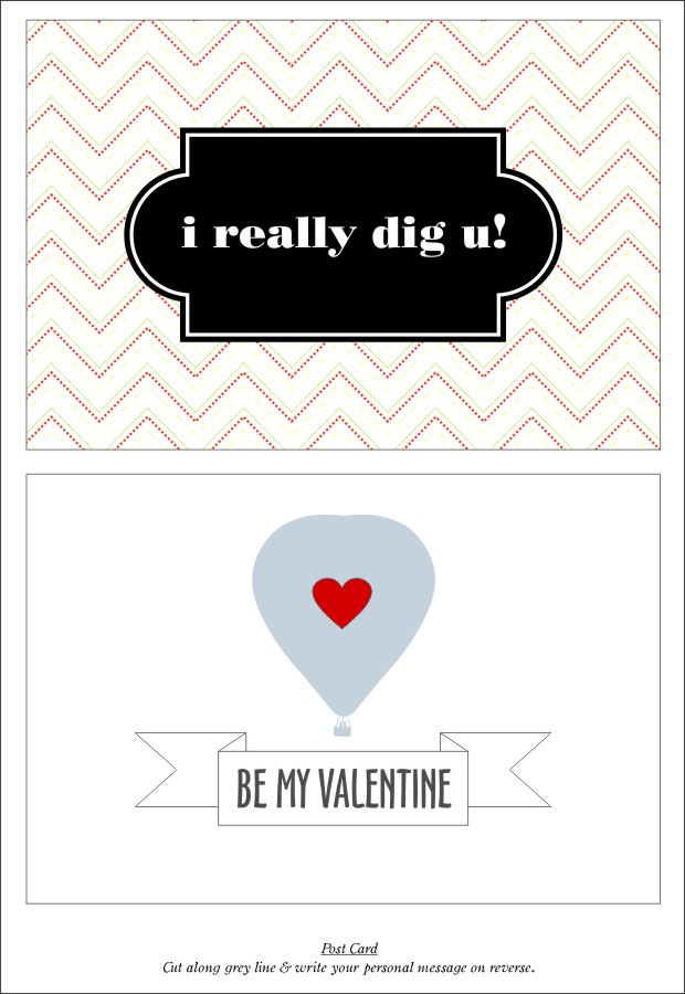Here is another DIY Valentine download. Its consists of a post card to send to your other half, as well as a full table for two stationery kit to make your romantic picnic, lunch or dinner extra special. The kit consists of a post card, place tags, a table for two number and a menu.